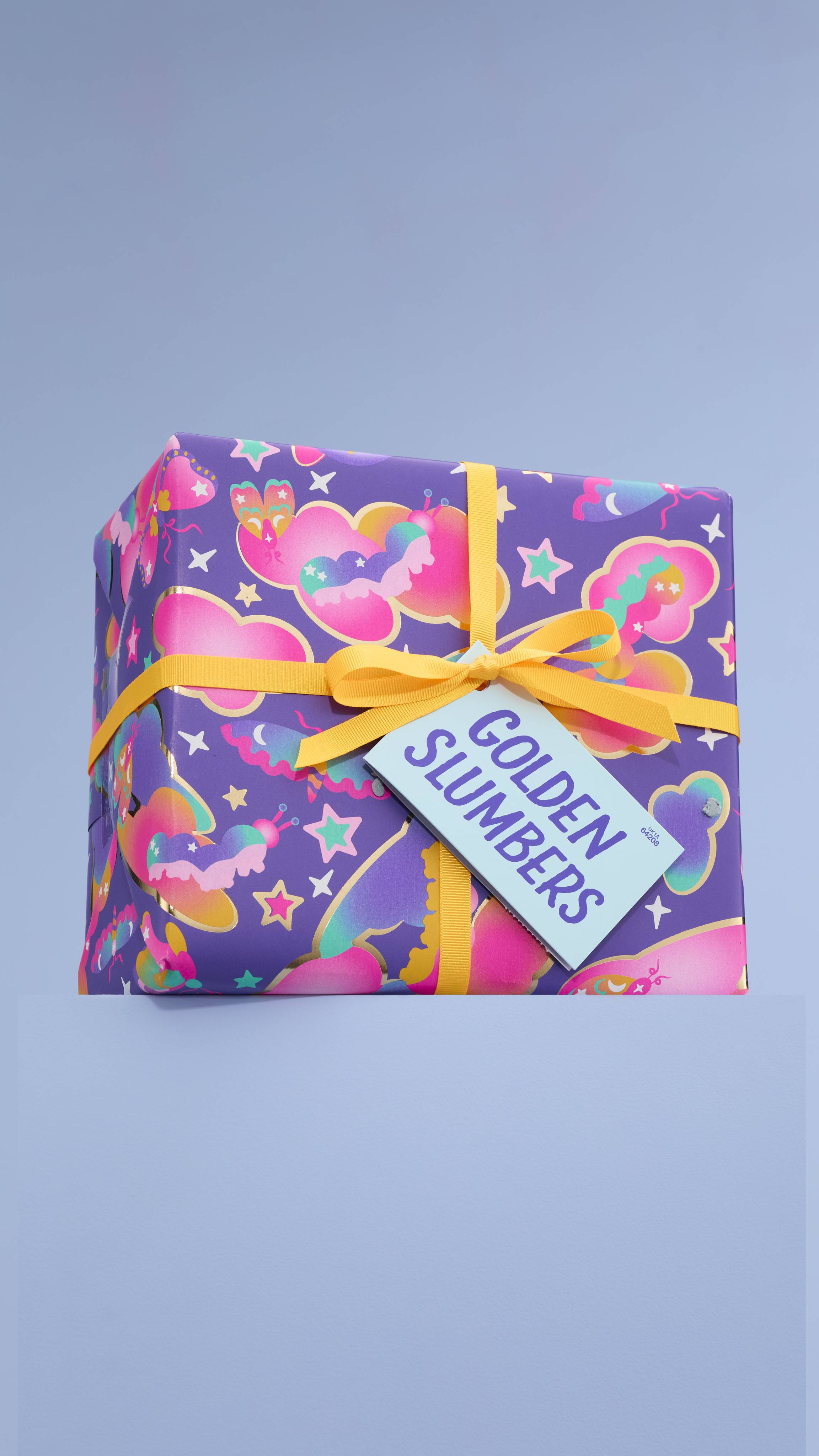This snuggly design was dreamt up by Lush Gift Designer, Grace Cole. “I wanted this gift to feel like a dream with glow worms and butterflies drifting through the clouds and stars. I wanted it to reflect the goodies inside such as the lavender for a cozy, magical wind-down.”